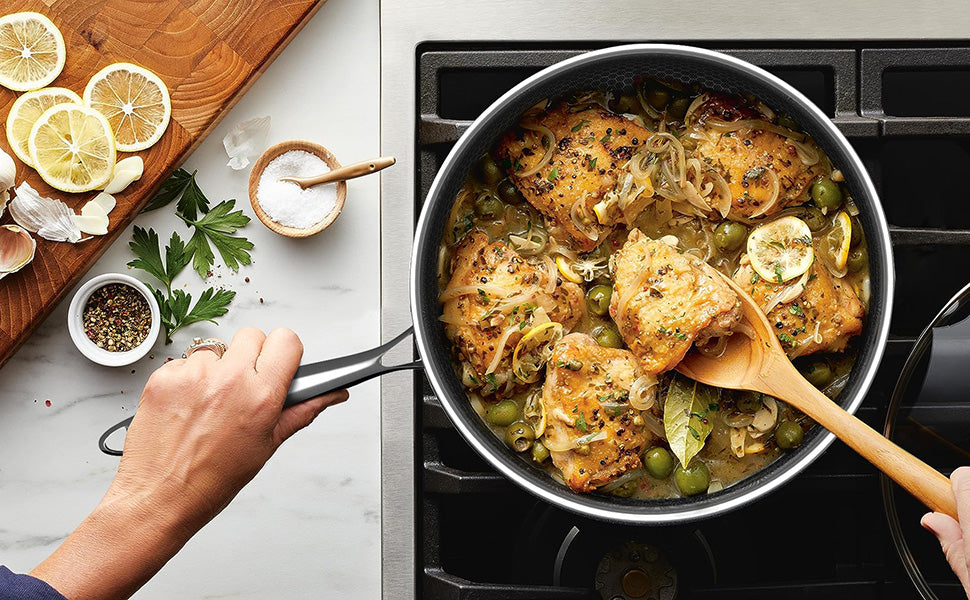 Die dreischichtige Verarbeitung aus hochwertigem 304 Edelstahl sorgt für eine außergewöhnliche Robustheit und gleichmäßige Wärmeverteilung. Dadurch werden Speisen schonend und effizient gegart, ohne Hotspots oder ungleichmäßige Hitze. Diese Konstruktion garantiert eine lange Lebensdauer Ihrer Pfanne.
