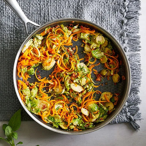 Dank der präzisen lasergravierten Wabenstruktur und der PFOA-freien Beschichtung gelingt jedes Gericht mühelos, ohne Anhaften.
