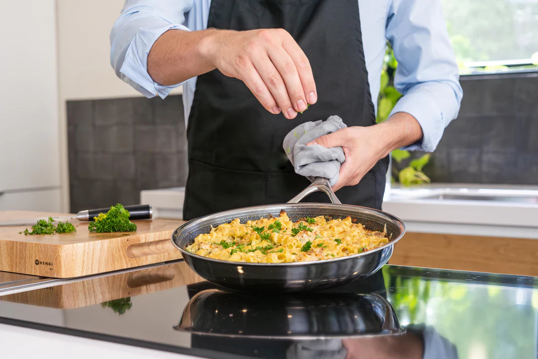 Unsere hochwertigen Edelstahlpfannen kombinieren innovative Antihaft-Technologie mit langlebiger Verarbeitung.
